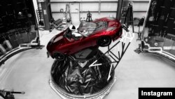 Shugaban binciken na SpaceX Mr. Elon Musk, ya tabbatar da sabuwar motar Telsa Roadstar, wadda aka gabatar a gaban mambobin kamfanin Falcon Heavy daga Jihar Florida.