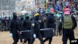 Daruruwan mutane ne suka taro a yankin Khan Yunis da ke kudancin birnin Gaza inda Hamas ta mika bakaken akwatunan gawa 4 ga kungiyar ba da agaji ta Red Cross, wacce ta yi safararsu cikin jerin gwanon motoci domin mikasu ga rundunar sojin Isra’ila.
