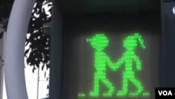 Alamun mutane biyun da akayi na tsallaka titi na nuna hoton namiji ya duka yana rokon budurwar shi data aure shi, sai kuma koren na miji yana rike da hannun budurwar suna tsallaka titi.