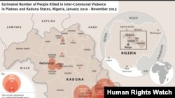 Wani sabon rahoto na kungiyar kare hakkin bil Adama ta “Human Rights Watch” yace an kashe dubban mutane a tashe-tashen hankula tsakanin al'ummomi dabam-dabam a yankin arewa ta tsakiyar Najeriya cikin shekaru hudun da suka shige, kuma kusan babu daya daga cikin wadanda suka aikata kisan da aka daure.