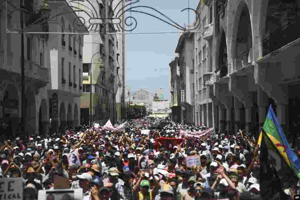 Dubun dubatan mutane sun yi tattaki akan tittunan Rabat, babban birnin kasar Morocco, a lokacin wata zanga zanga ta nuna rashin amincewarsu da gwamnati akan cin hanci da rashawa, ranar Lahadi 11 ga watan Yuni shekarar 2017