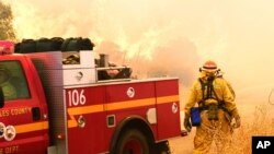 Duk da kokarin da jami'an kwanwa-kwana ke yi na kashe gobarar daji a jihar California, har yanzu iska na yin barazana a yankin.