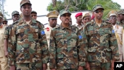Shugaba Mohammed Abdullahi Mohammed wanda ake wa lakabi da Farmajo yana Magana a jiya, wurin bikin cika shekaru 57 na samar da gidauniyar sojojin kasar, bikin wanda aka gudanar a cikin harabar ma’aikatar tsaron kasar dake Magadishu.