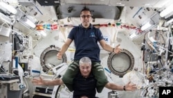 Ma’aikatan biyu Amurkawa da dan kasar Rasha daya, sun sauka a yankin Soyuz jimkadan bayan ketowar alfijir a kasar Kazakhstan yau da safe, sun sauka cikin matsanancin yanayi mai tsabar sanyi.